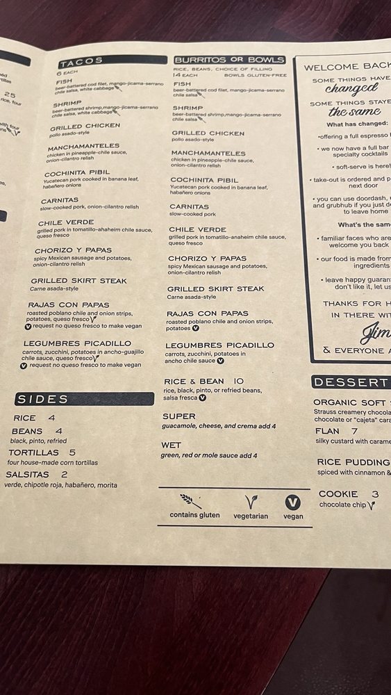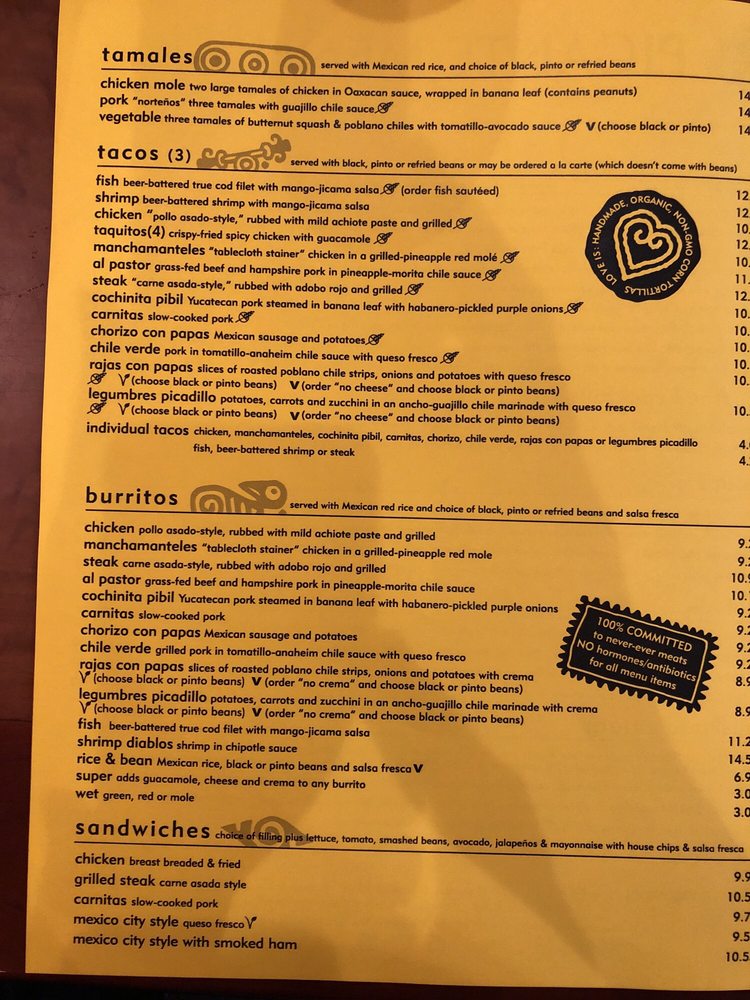 two tortillas, rice, and black, pinto or refried beans vegetarians: order black or pinto
