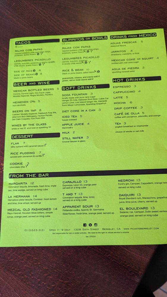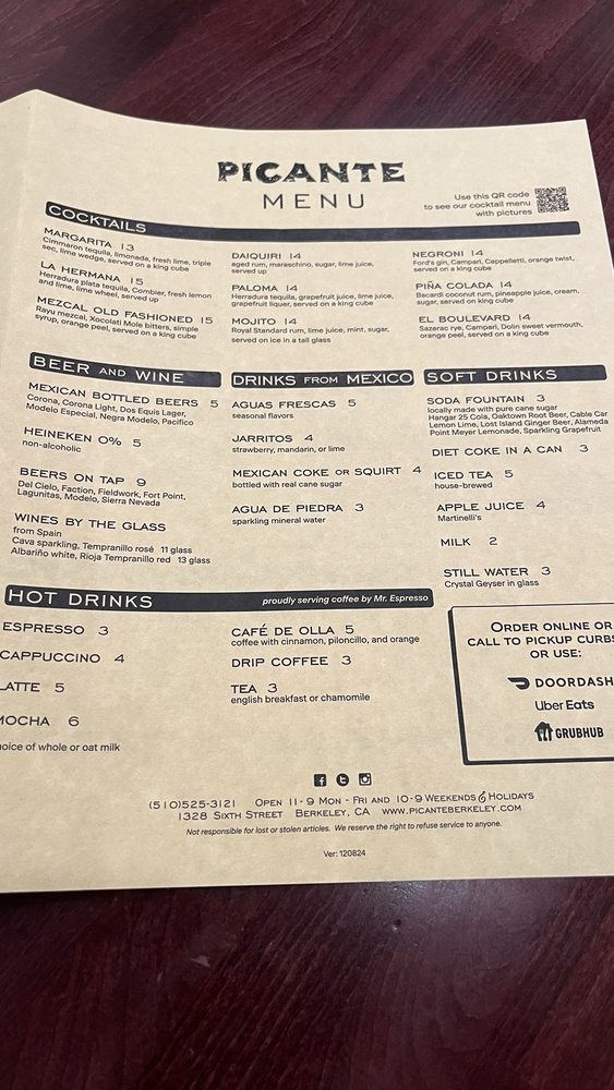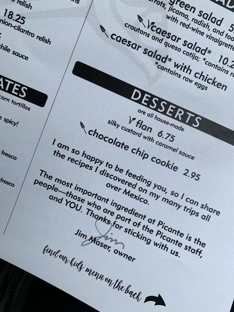 Picante Menu